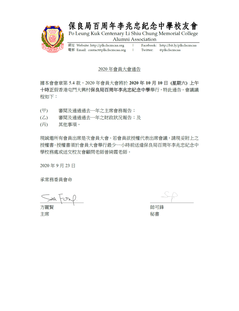 各校友如有任何疑問,可以電郵contact@ plkclscmcaa.org與本人聯絡。