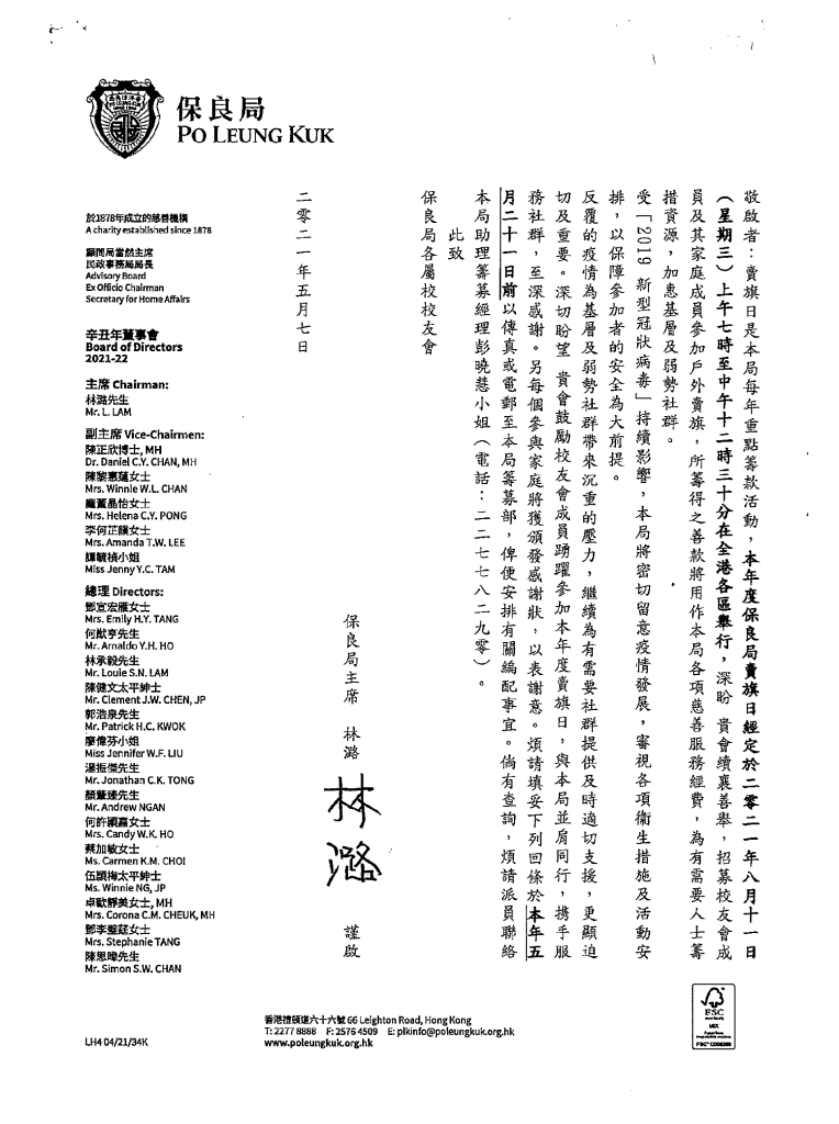 上述選舉將於2021年7月17日假香港新界屯門大興邨保良局百周年李兆忠紀念中學以不記名投票方式進行,請回母校投票的校友帶備身份證明文件(例如:身份證),以供校友會核實校友身份(所有曾就讀保良局百周年中學/保良局百周年李兆忠紀念中學的校友均有投票權)。